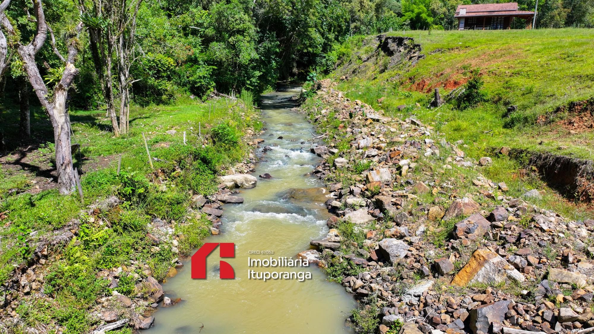 Rio de águas limpas fazendo extrema com a propriedade